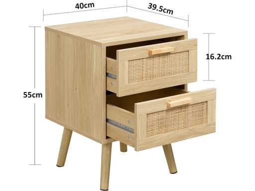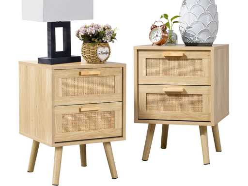 Set van 2 nachtkastjes, bijzettafels met 2 versierde lades
