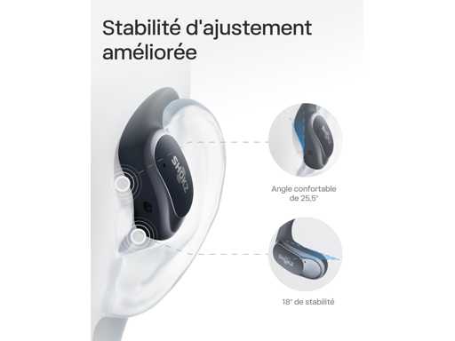 Free-ear ontwerp voor gegarandeerd comfort: OpenFit Air erft het free-ear ontwerp van Shokz, weegt slechts 8,7 g en biedt je meer comfort en stabiliteit in de pasvorm. Je vindt het paar dat bij jouw stijl past tussen 3 kleuropties.