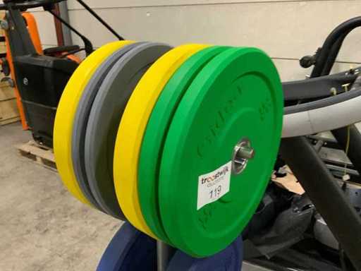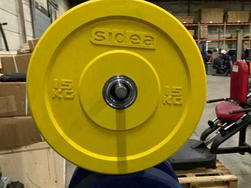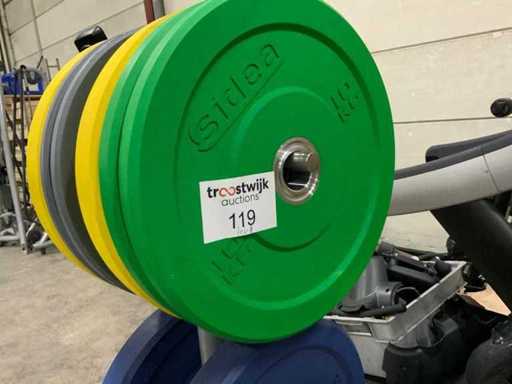 Sidea bumperplates met rek 2x25kg;2x20kg;2x15kg;2x10kg;2x5kg Krachtstation