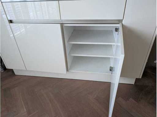 Conditie: gebruikt; afmetingen spoelbakgedeelte circa 178x62x94 cm; afmetingen kookgedeelte circa 286x62x94 cm; afmetingen kastenwand circa 184x58x211 cm; reeds gedemonteerd en ingepakt op pallets (afstapelen, omruilen of statiegeld per pallet); pallets zijn niet inbegrepen; statiegeld betalen bij afhalen, of pallets afstapelen; werkblad niet ingepakt op pallets (26-2DE-03112)