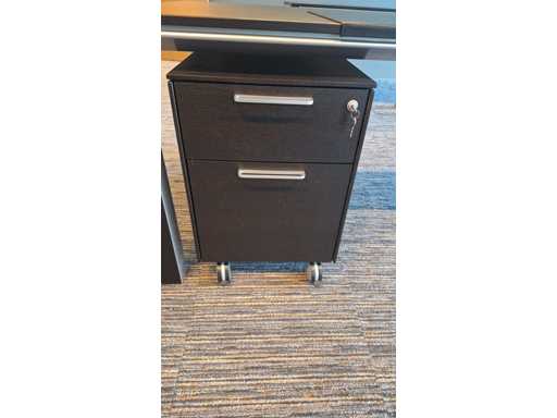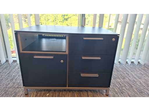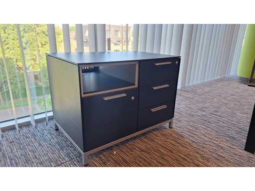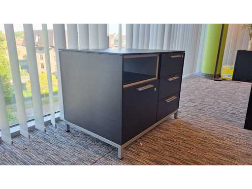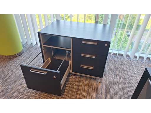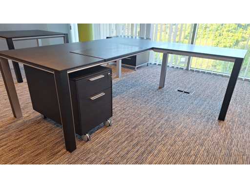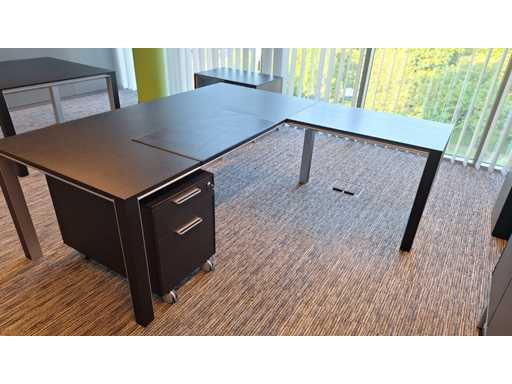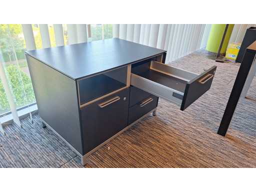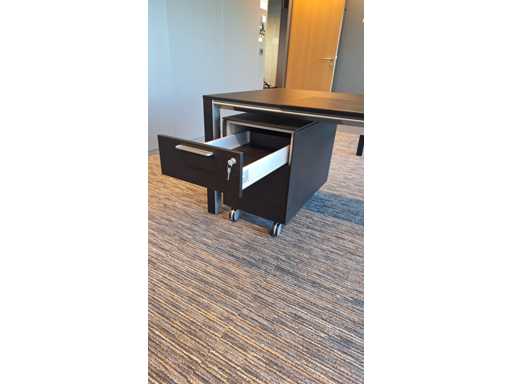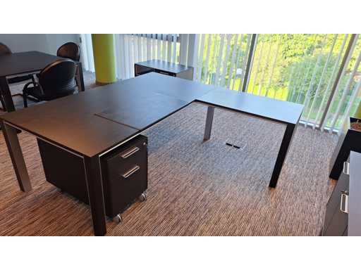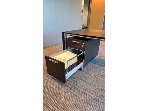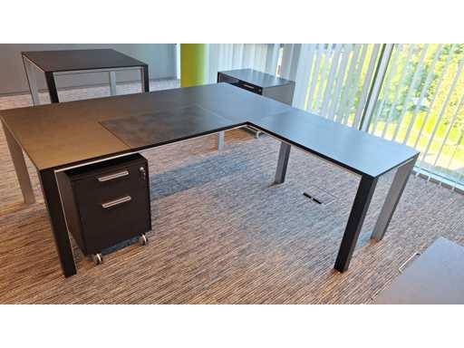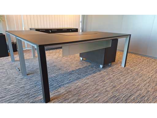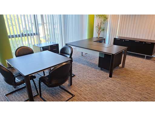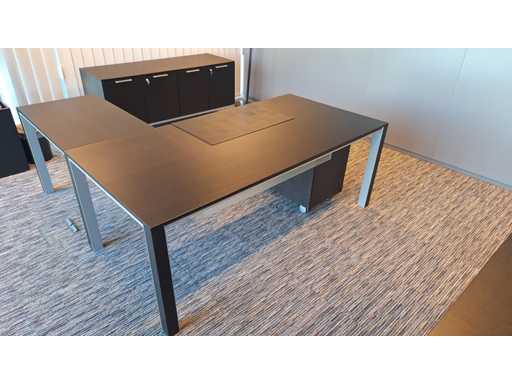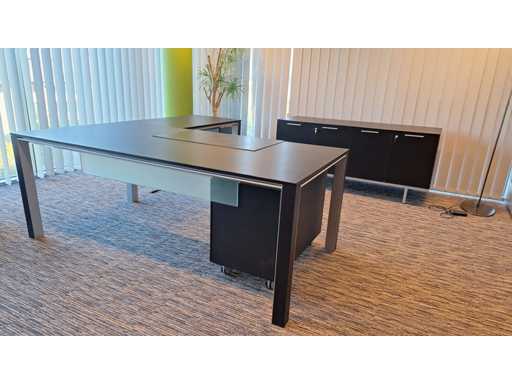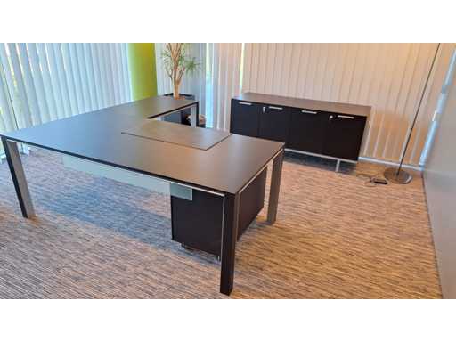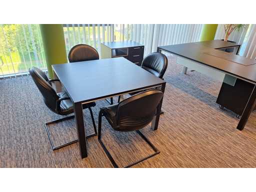 Directiekamer inrichting Sikame (zonder stoelen), bestaande uit hoekbureau met ladenblok afm. 2000 x 2000 x 740 mm (l x d x h) + vergadertafel afm.: 1100 x 1100 x 740 mm ( l x d x h) + dressoir/dossierkast afm.: 1680 x 740 x 590 mm (b x h x d) + dossierkast afm.: mm (b x h x d)
