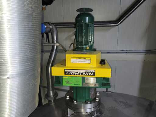 Het vat is uitgerust met een Lightnin industriële menger, die bekend staat om zijn efficiënte roerwerking en consistente menging. Hoewel de mixer is gedemonteerd, is hij klaar voor verzending, waardoor het een praktische en schaalbare oplossing is voor uitbreidingsprojecten.