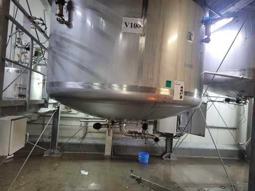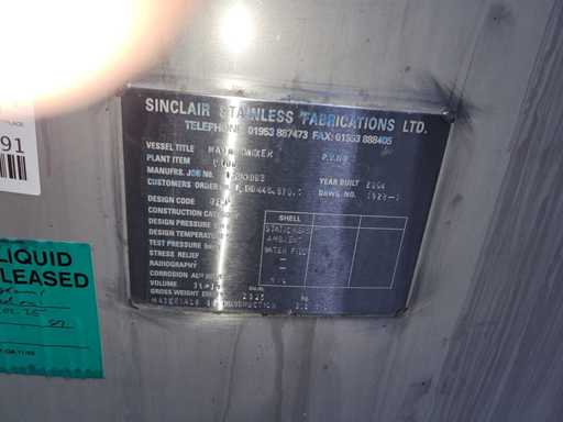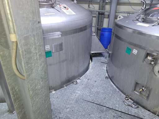 Inhoud 15.000L; Beklede, SS316, Lightnin Mixer; kleppenblok; hoogte: 3430 mm; Diameter: 2400 mm, hangend in platform, tank is ontmanteld en klaar voor verzending
