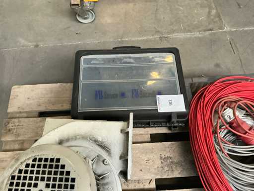 zijnde slakkenhuisventilator 1,1 kW en diverse elektrokabel, alsook materiaalkoffer