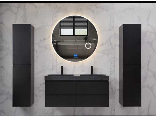 Type: RNLM-80 Model: Ronde spiegel met LED verlichting Afmetingen: Ø80 cm, dikte: 0,5 cm Kleur: LED verlichting in 3 kleuren; geel, blauw en wit Voorzien van: Touch bediening via digitaal display – LED verlichting in 3 kleuren, dimbaar – Bluetooth & speakers – Digitale klok – Digitale temperatuurmeter – 220 volt aansluiting – Anti-fog technologie door verwarming in de spiegel – Vergrootglas (vergroot 3x) in de spiegel Ø10 cm - Kopervrije spiegel - 1,5mm explosieveilige laag aan de achterkant.