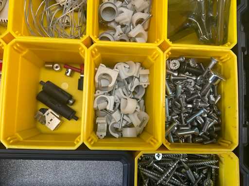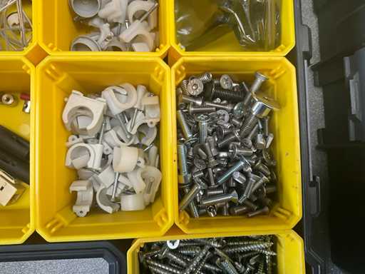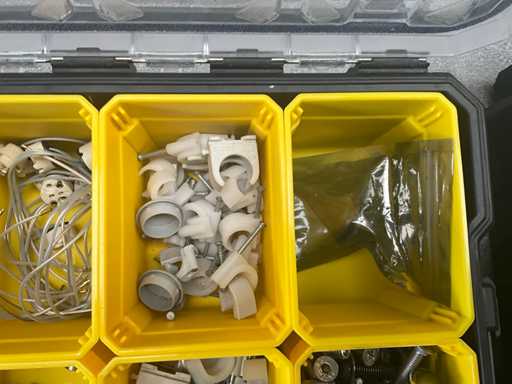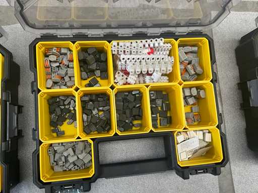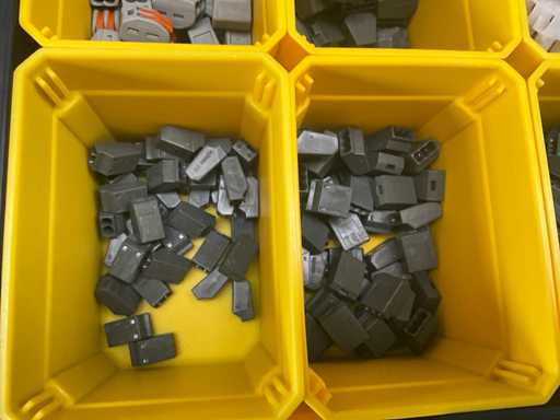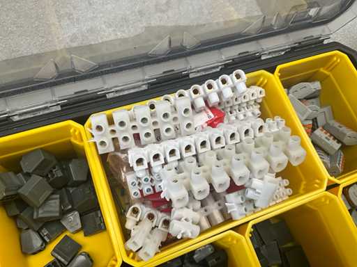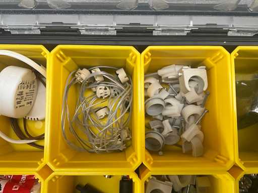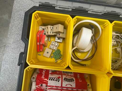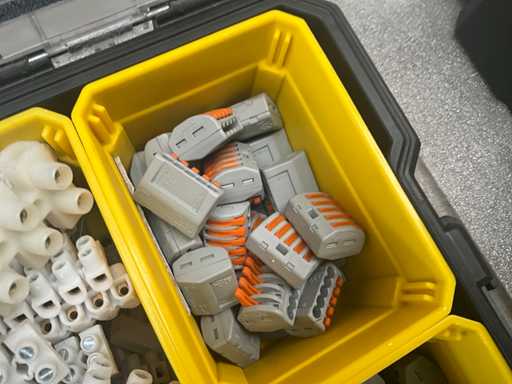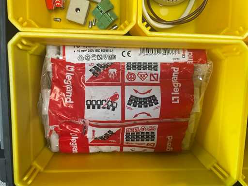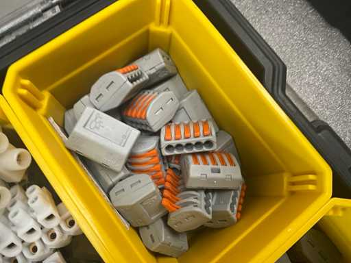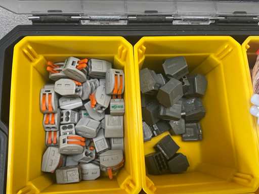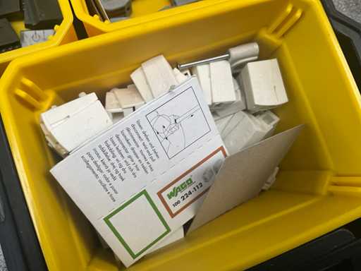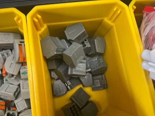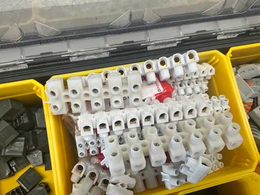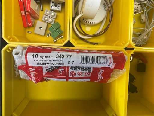 Zijnde partij diversen waaronder divers bevestigingsmateriaal, pvc buisklemmen, Nylblocs Legrand, aansluitklemmen, verdeelklemmen, koppelingskabelconnectoren, pitches, railklemmen, connectoren waarvan voornamelijk WAGO.