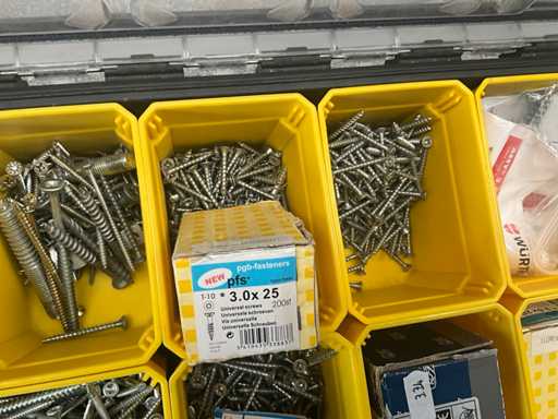 Zijnde partij divers bevestigingsmateriaal waaronder voornamelijk vijzen PGB-Fasteners in diverse formaten.