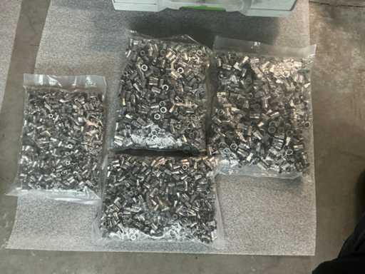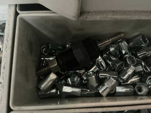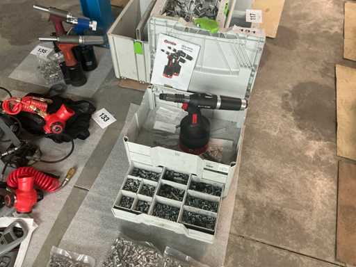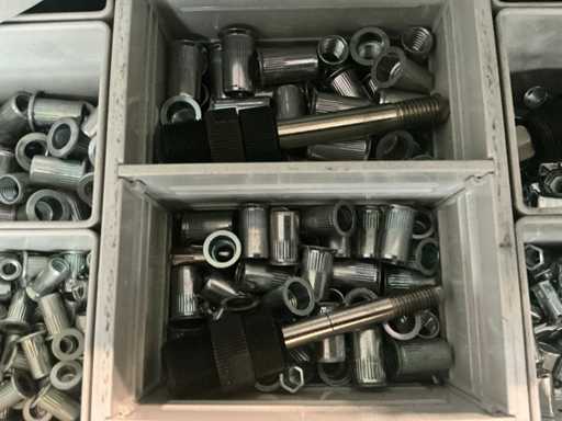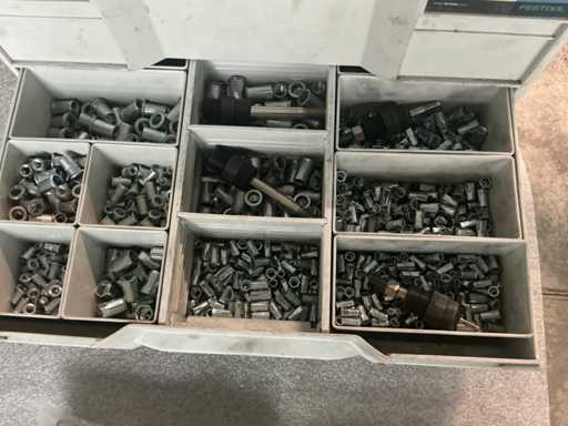 In Festool Systainer. Inclusief 4 zakken met circa 1000 stuks per maat M4, M5, M6 en M8 RVS zeskant blindklink.
