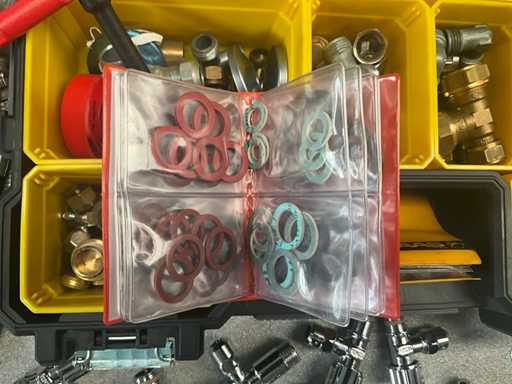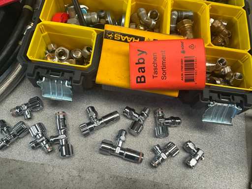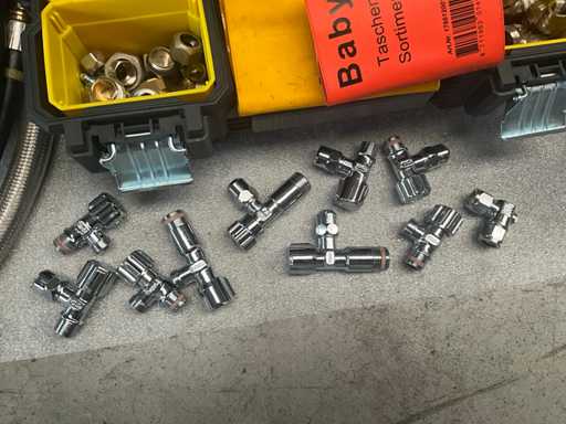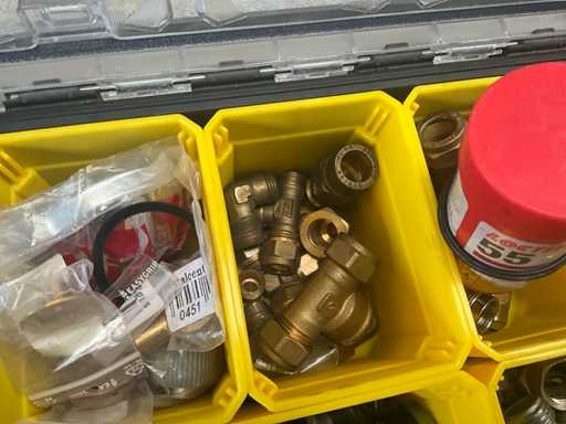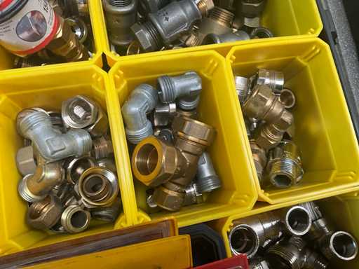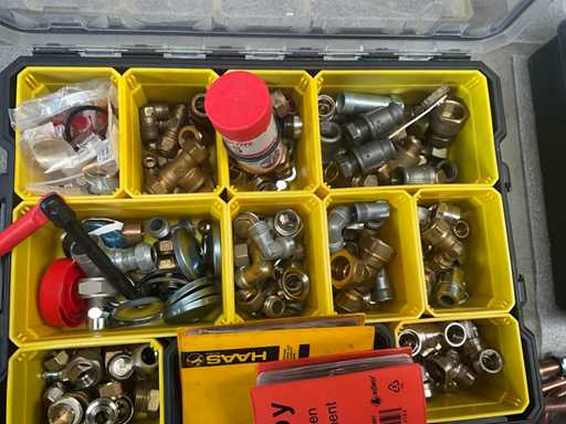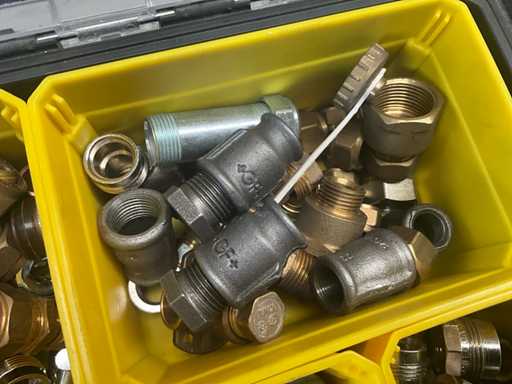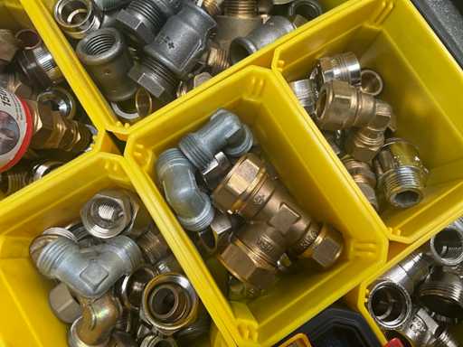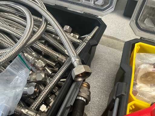 Zijnde partij diversen waaronder verschillende koppelstukken, tussenstukken, afsluitkranen, eindstukken, enz. waarvan fabr. KIWA, +GF+, compleet met diverse flexibels.