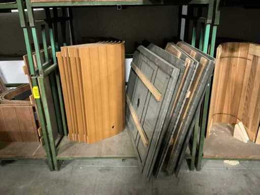 Compleet met inhoud inhoudende diverse houten wanden voor jaccuzi’s waaronder modde,trespa, waaronder zijkanten en rechte stukken