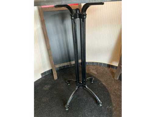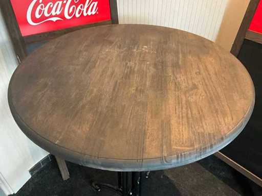 Statafel voorzien van metalen onderstel en houten bovenblad dia 80, hoogte 110cm