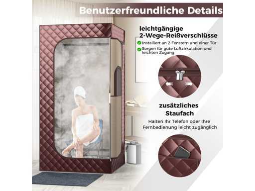 Afmetingen van de saunatent: 91 x 91 x 183 cm (L x W x H)