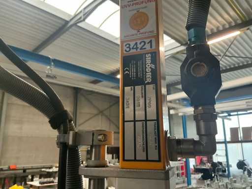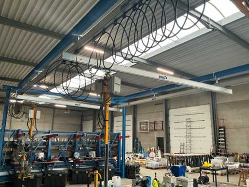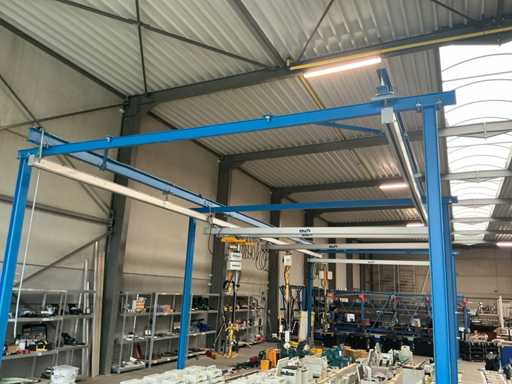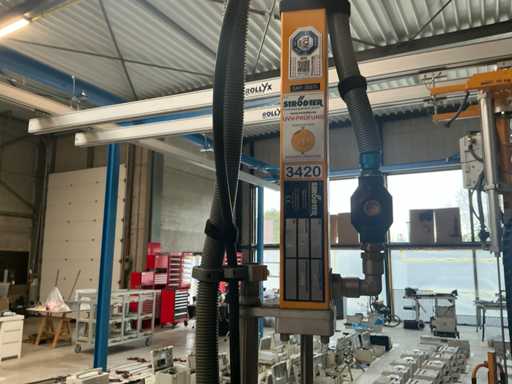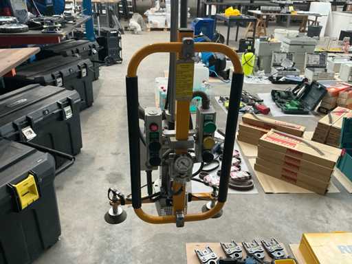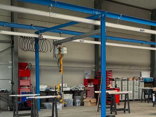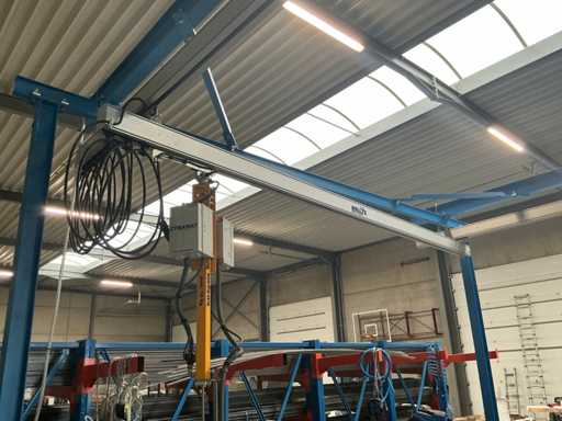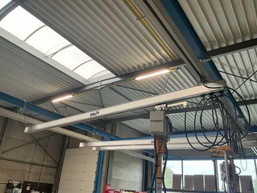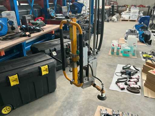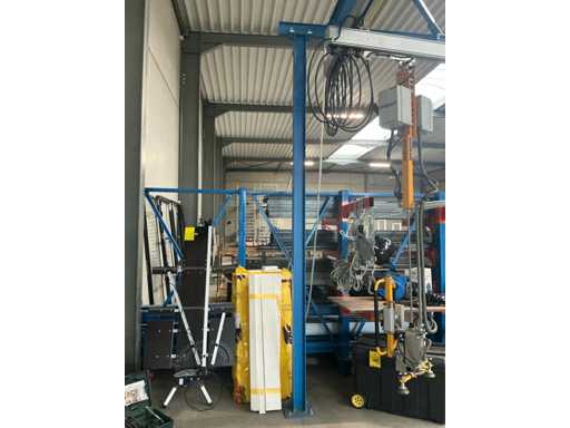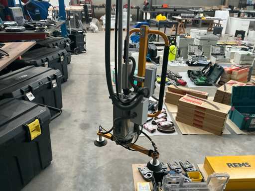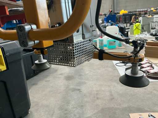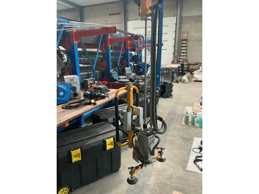 Inclusief 2x Strödter Zybomat ZP 60 instelbare vacuüm heffer op Rollyx railsysteem. Manueel verschuifbaar. Bestaande uit 6x steunpaal lengte 363cm. Hijsvermogen is aanpasbaar volgens instelling.