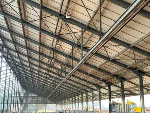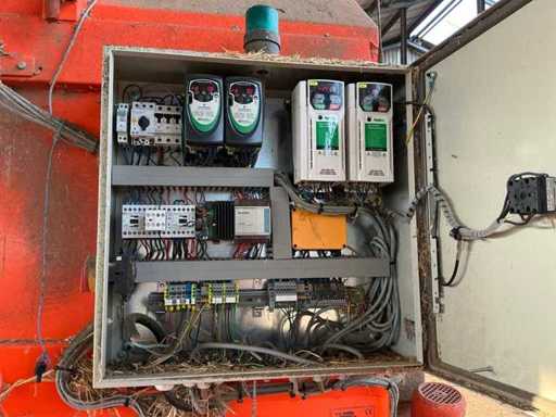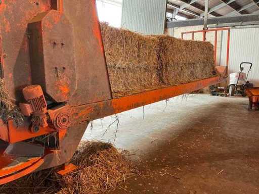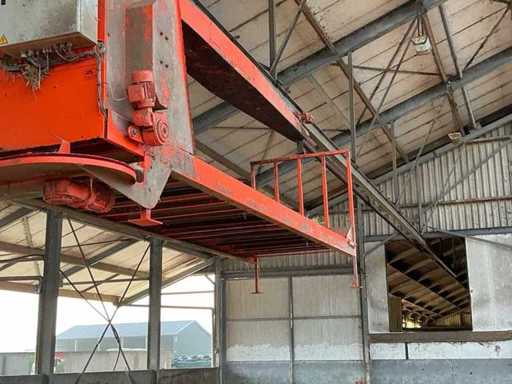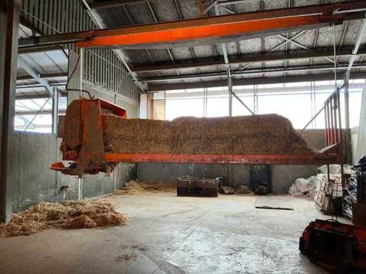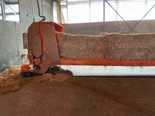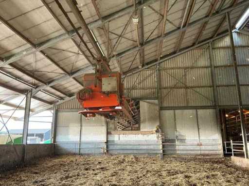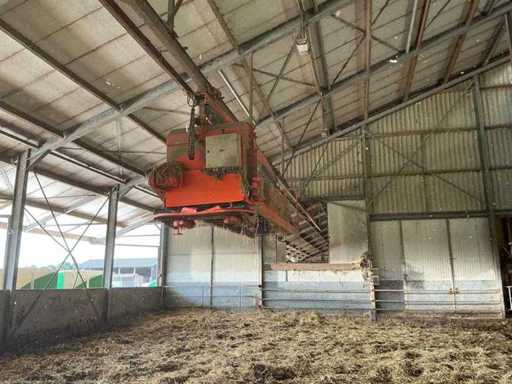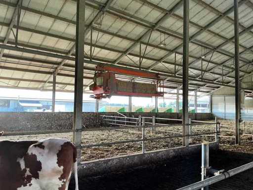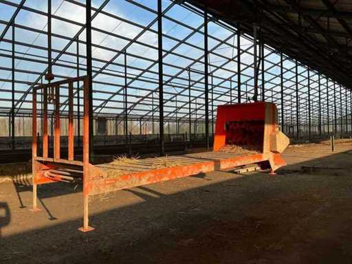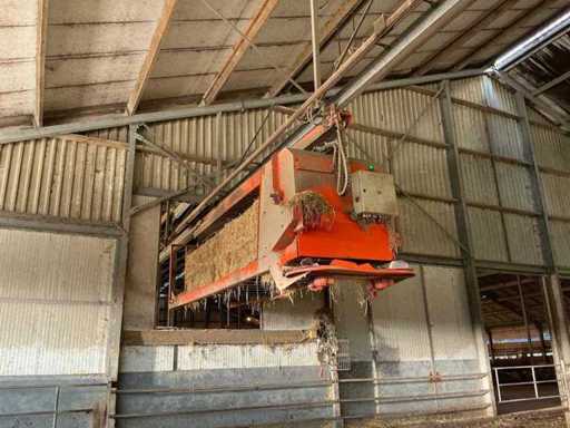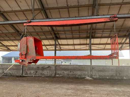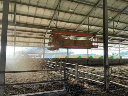 Voorzien van: Stro verdeler bouwjaar 2008, hijssysteem 2014, totaal lengte rail 160mtr, besturingssysteem, bekabeling, incl. ophangsysteem voor aan spanten, rail met sleepcontacten, traploze bediening op baalaanvoer, traploze rijsnelheid, draadloze afstandbediening, geringe geluidsproduktie, geringe stofontwikkeling, geschikt voor vierkante en ronde balen, stro verspreiding van 10 m breed.
