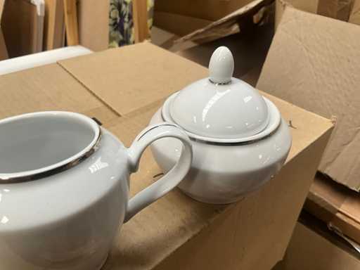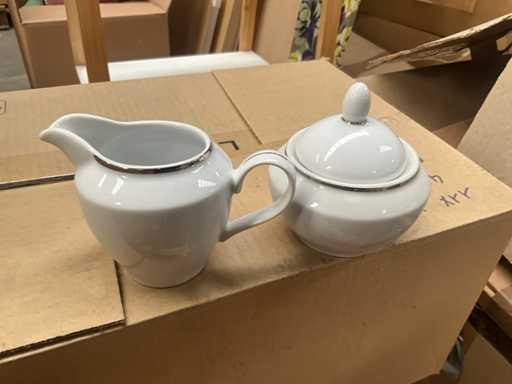 18 sets bestaande uit een suikerpot en een melkkan getekend LEVI (in 1 doos)