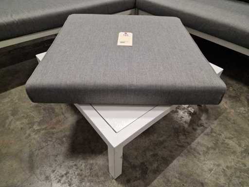 Suns - Hoeklounge Set Barolo Wit met Kussens Olefin Lichttgrijs - Salontafel met Gehard Glas Wit + Poefkussen - Wasbare Kussens met Rits - Inclusief Salontafel