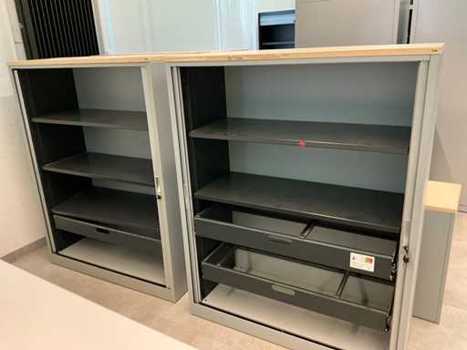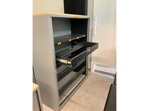 3 kasten voorzien van uittrekbare dossierhangers.