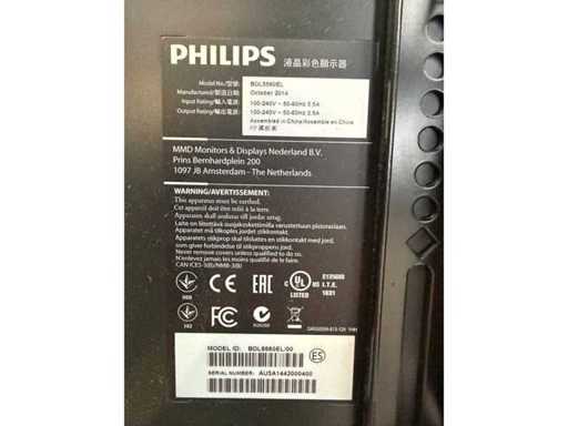 Set van drie Philips schermen met afmetingen ca. 125 × 72 × 7 cm. Niet getest en geleverd zonder stroomkabel of afstandsbediening. Geschikt voor onderdelen, herstel of hergebruik in een technische omgeving.