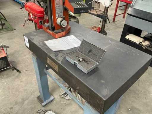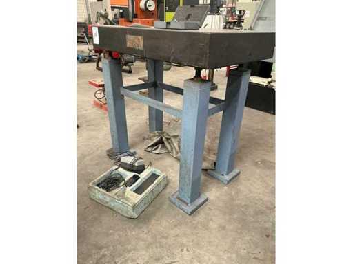 Granieten tafel met stalen onderstel, afmeting tafel totaal 1000x631x1030mm, hoogte hoogtemeter850mm.
