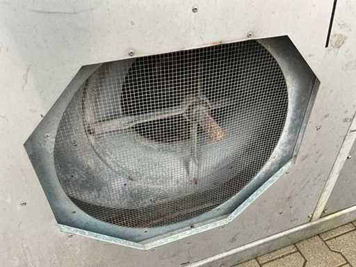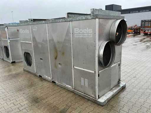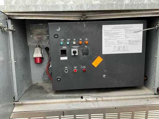 gegalvaniseerd staal onderstel; gegalvaniseerd staal hijsframe; heftruck vorksleuven; roestvast staal behuizing; diesel gestookt; aansluiting externe brandstoftank; verbruik circa 38 liter brandstof / uur; volumestroom 24000 m3 / uur; afgelezen urenstand onleesbaar uur; gebruiksporen; working condition not verified, schade aan deuren