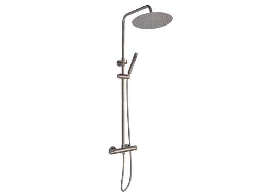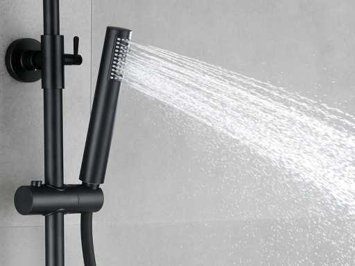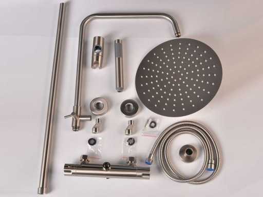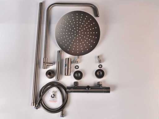 Kleurkeuze diverse kleuren: mat zwart/chroom/geborsteld RVS/Geborsteld goud/Gunmetal grey/geborsteld Koper,(u heeft de keuze uit 1 van deze kleuren, uw keuze graag doormailen op info@mawialux.nl direct na sluiting van de veiling) opbouw regendouche met thermostaatkraan, Materiaal messing en rvs, Kraan thermostaatkraan, Binnenwerk keramisch, Douchekop plat design 30 cm doorsnede van 304 rvs, Handdouche verstelbaar met doucheslang, Hoogte verstelbaar, Voorzien van douchekop met kunststof wateruitlopen om gemakkelijk kalkaanslag te verwijderen, douchekop kantel en draaibaar, keramisch binnenwerk goed voor 800.000 keer open/dicht zonder lekkage, plaatdikte: 12 UM, werkdruk: 2-16kgf/cm2, werking temperatuur: 0 tot 90 graden Celsius, anti kalk behandeld, Conditie: Nieuw, Bijzonderheden h.o.h. afstand van 150 mm (naar 120 mm te krijgen met de meegeleverde s-koppelingen) , 2 jaar garantie, hoge kwaliteit