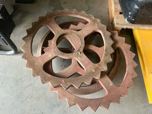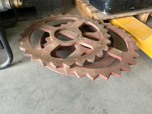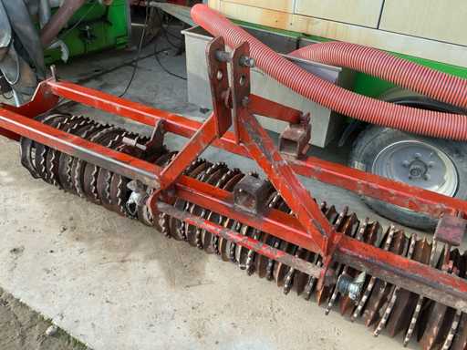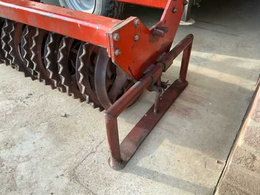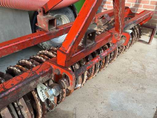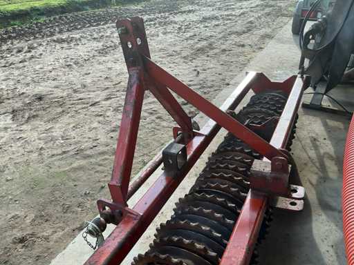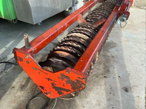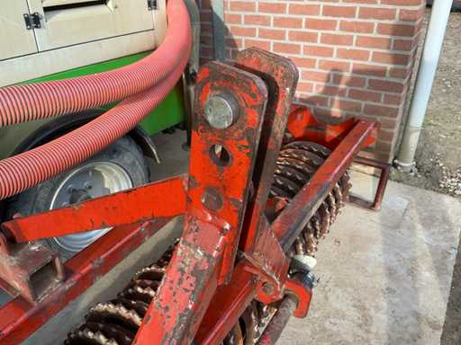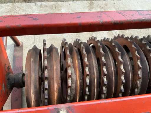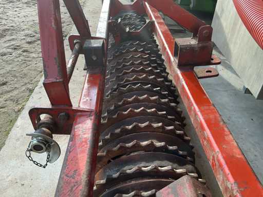 Voorzien van: 3 punts ophanging, trekhaak, steun t.b.v. stalling, 29 stuks trapezium rol, 29 stuks getande rol., 2 stuks reserve getande rol, 1 stuks reserve trapezium schijf, naaf diameter 120mm,