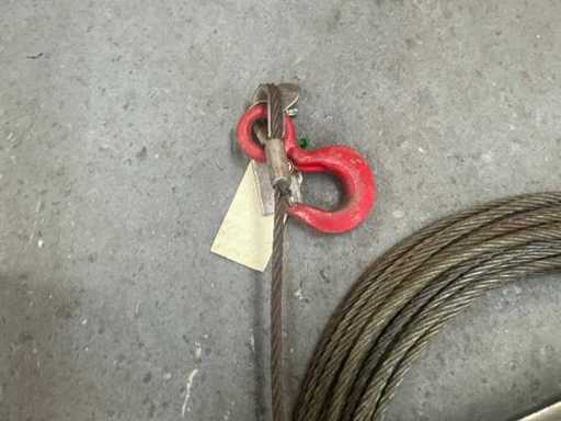 Met ongebruikte staalkabel op rol. Lengte 50 meter. Diameter 11,5 mm.