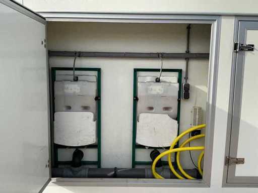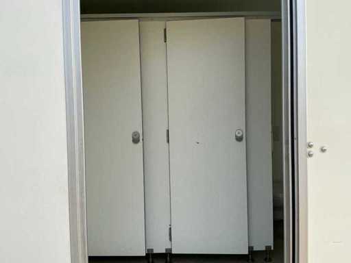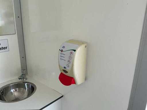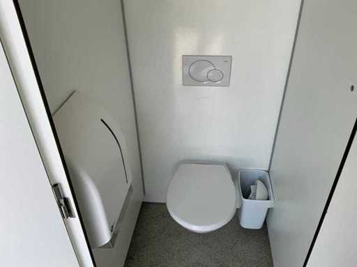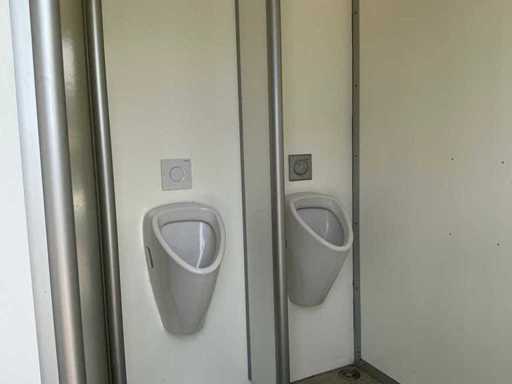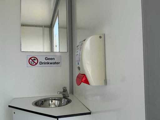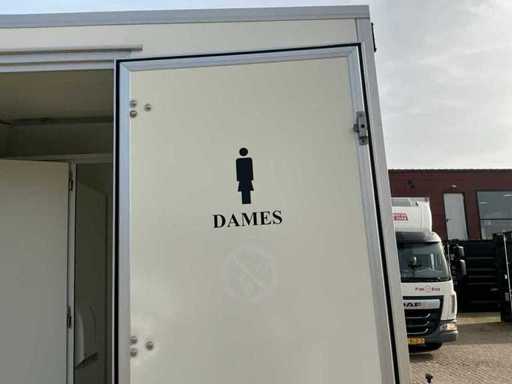 Voorzien van gescheiden toiletruimte voor dames en heren; toiletblok heren: 3x urinoir + toilet, spoelbak, verlichting. Toiletblok dames: 3x toilet, spoelbak, verlichting.