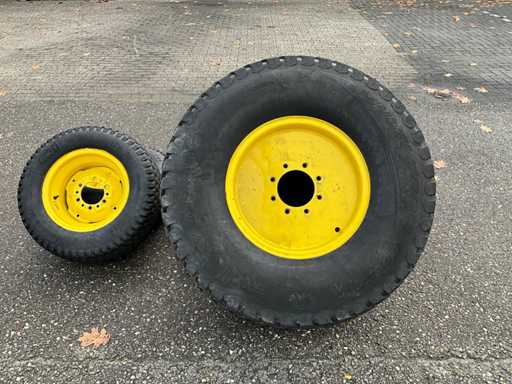 2x BKT 27x10.50-15 6-gaats velg, 2x Titan 44x15.00-20 8-gaats velg