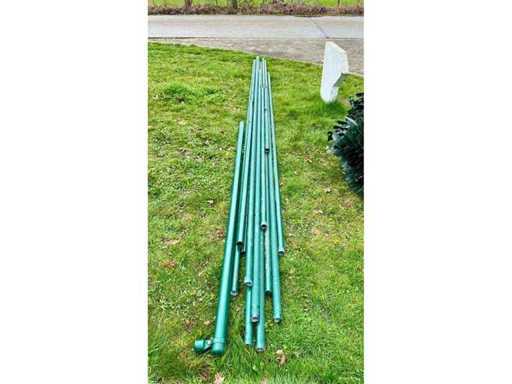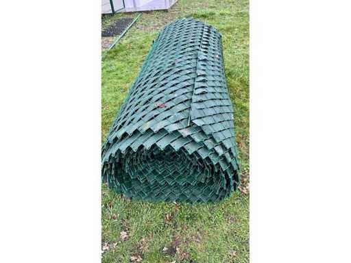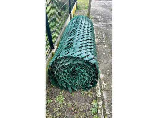2 rollen+ bovenbuizen en klein materiaal. Let op, foto’s van het opgezette hekwerk zijn voor demontage! Het gaat dus om de rollen gevlochten draad en klein materiaal. 1 rol van +- 35 meter 1 rol van +- 20 meter Hoogte +- 1.8 meter