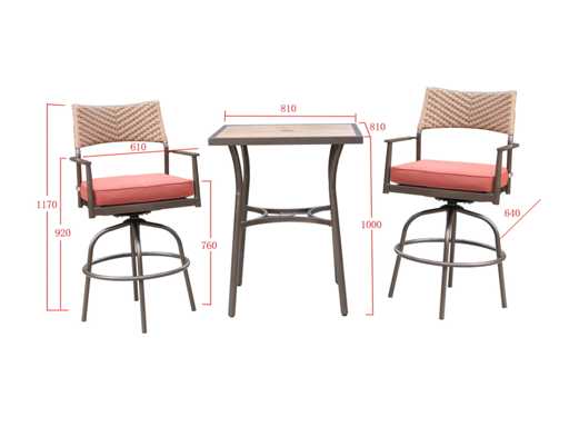 Voorzien van: Waterafstotende kussens - weerbestendig vlechtwerk - RVS frame – draaibare stoelen - Gat in tafel voor parasol.