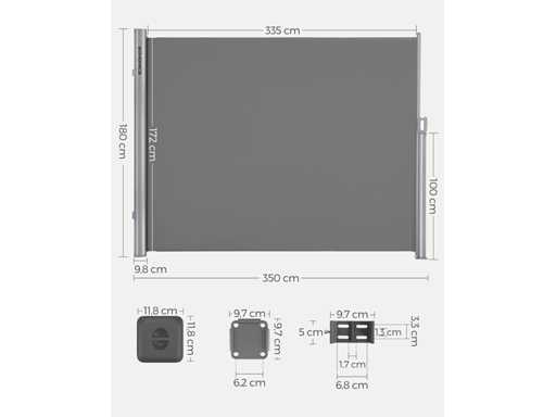 Uitschuifbare aluminium zijluifel 180 x 350 cm
