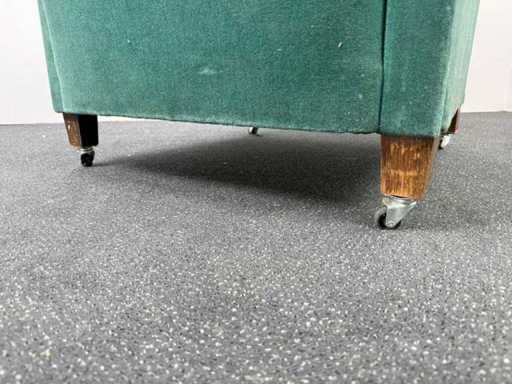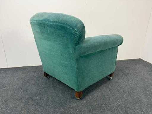 Armchair in turquoise stof, in gebruikte staat. Mogelijk in nood van reiniging