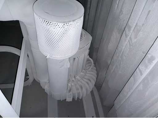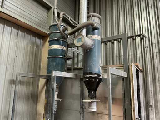 Bestaande uit 2x Dustcontrol S11000, vacuümpomp, geluidsdempende wand, en bedieningskast