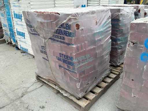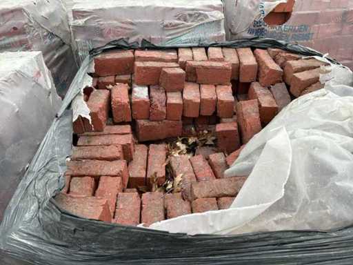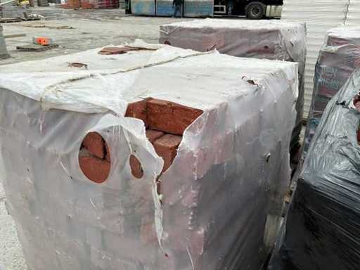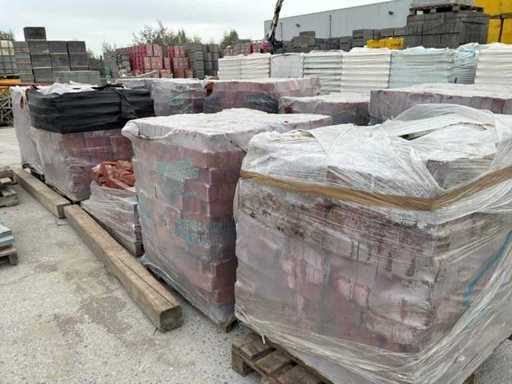 10 palletten rode veldsteen. Waarvan enkele palletten niet volledig