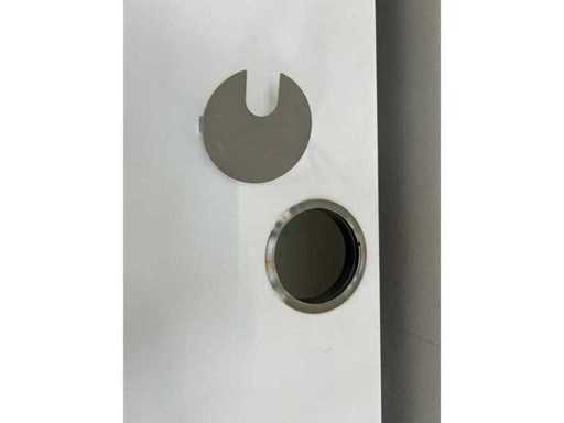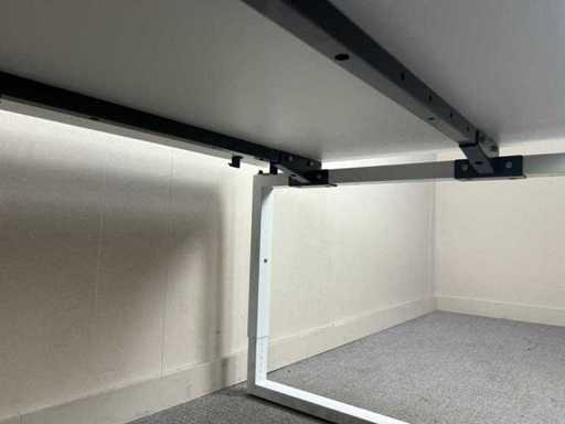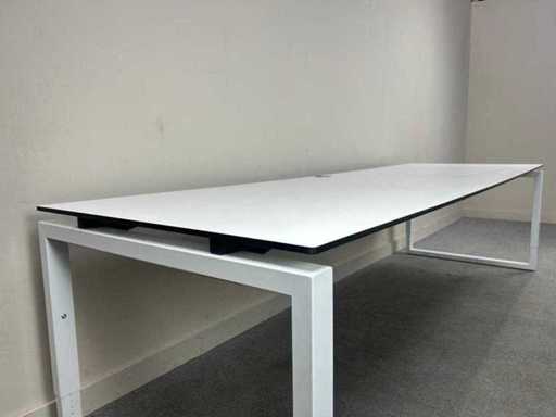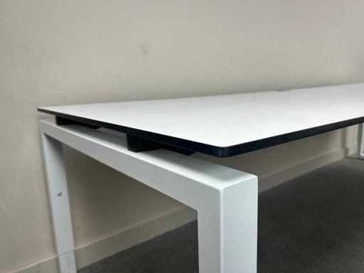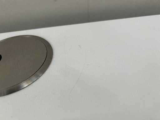 Witte vergadertafel uitgerist met kabeldoorvoer, handmatig verstelbare hoogte van 62 tot 82 cm