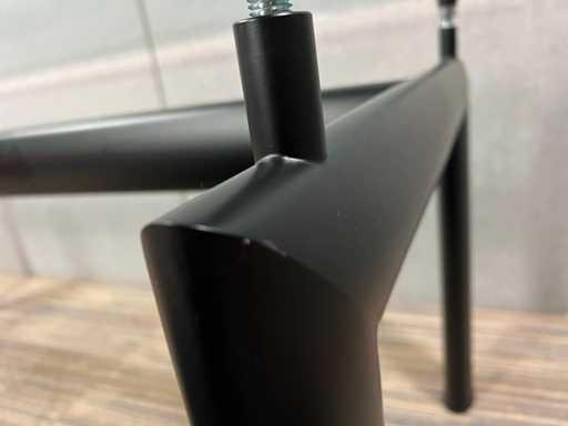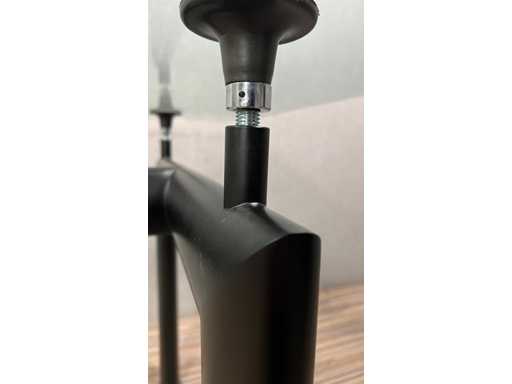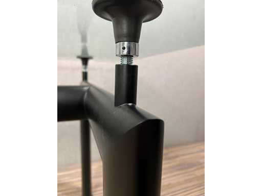 Glazen blad met zwart metalen onderstel