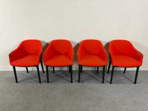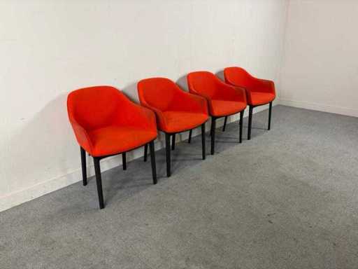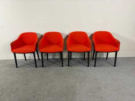 Set van 4 Vitra ontvangststoelen met zachte oranje zitting op zwart metalen vierpoot