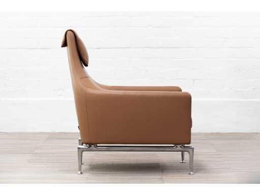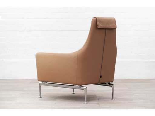 De Suita Fauteuil ontworpen door Antonio Citteriovult de gelijknamige sofafamilie aan met een compacte fauteuil met comfortabele zitdiepte en een hoge rug. Van opzij gezien is de Suita Fauteuil de belichaming van luxe en comfort: diepe, in leder beklede en langgerekte armleuningen gaan elegant over in een hoge rugleuning die bovenaan is afgewerkt met een nekkussen. De Armchair kan