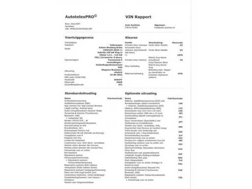 Tussen de afbeeldingen vindt u het VIN Rapport met Fabrieksinformatie en Opties en Accessoires.