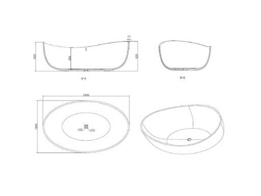 vrijstaand bad - solid surface (beschikbaar in 3 kleuren) - Ethan