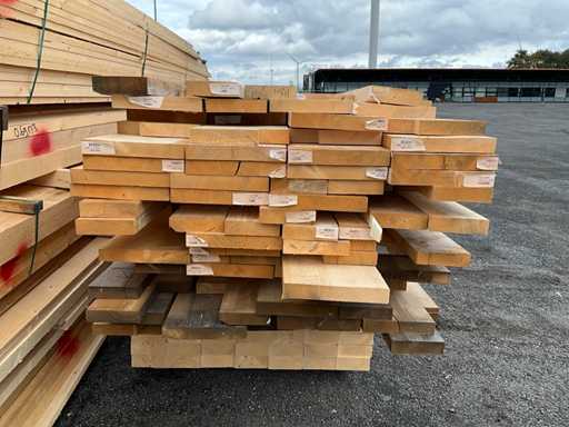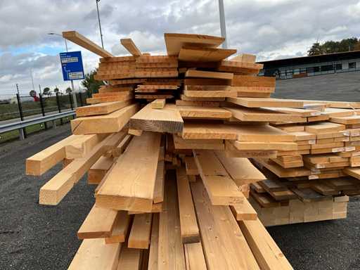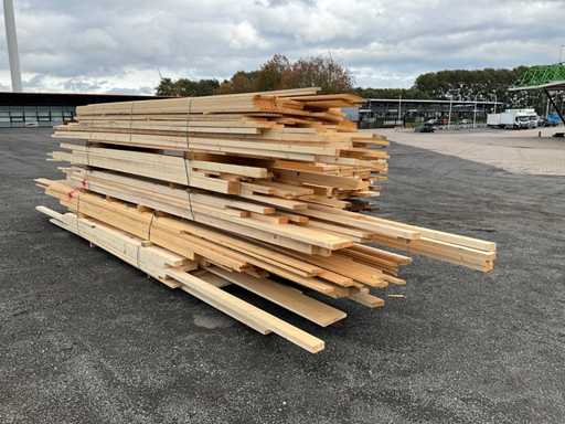 Vuren hout 2e keus, droog geschaafd en ruw, lengtes variëren van +/- 1800mm-7000mm, diverse kopmaten