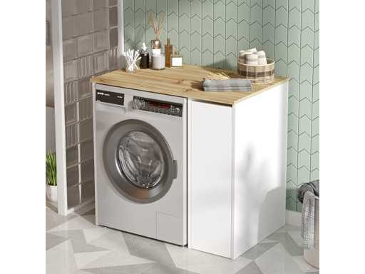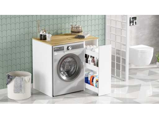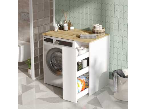 Merk Yurupa Kleuren Wit, Ecru Aanbevolen gebruik voor netten Afmetingen product: 60P x 88.3W x 85.9H centimeter Bijzonderheid Geschikte uitsparing voor wasmachine, uitschuifbare kast met drie niveaus Montage Type Vloer Zet op