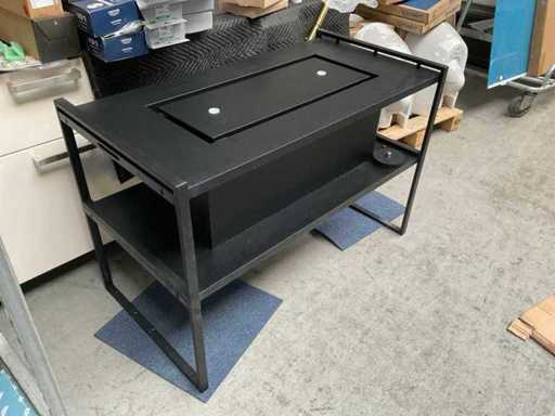Betreft middelste component zonder regaalframe; kan zowel boven een kookeiland als tegen een wand; zonder afstandsbediening; met motor; showroom model; niet gecontroleerd