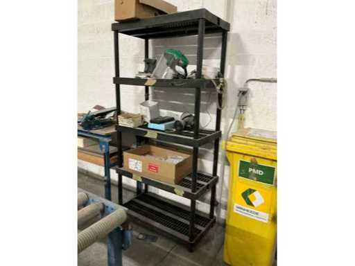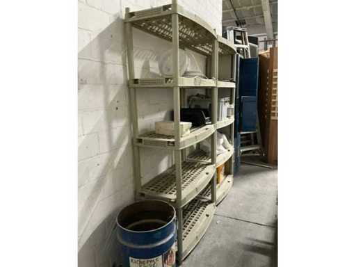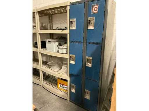 En 183 x 60 x 90 cm, compleet met 3 pvc Magazijnrekjes en 2 metalen lockerkasten