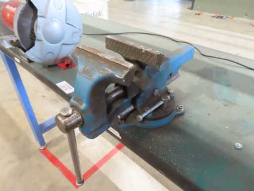 Werkbank met slijpmachine en bankschroef