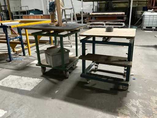 Voorzien van roterend houten bovenblad en verrijdbaar metalen onderstel