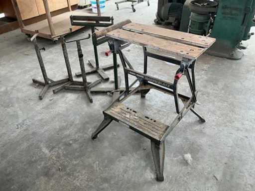 Werktafel B&D Workmate, compleet met 2x rolsteunen 40cm breed en 3x metalen driepikkelsteun