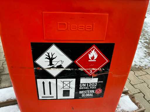 capaciteit 105 liter; deksel; vulpistool; handbediende pomp; voor diesel; verrijdbaar; working condition not verified;