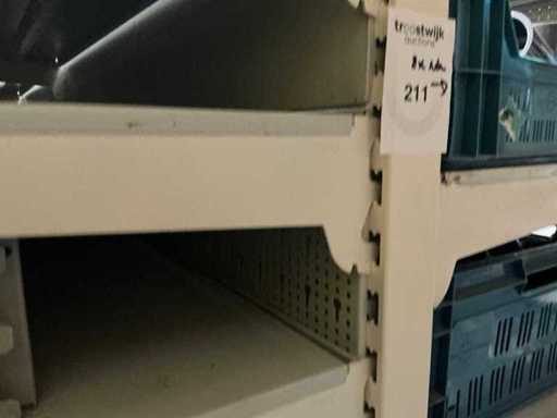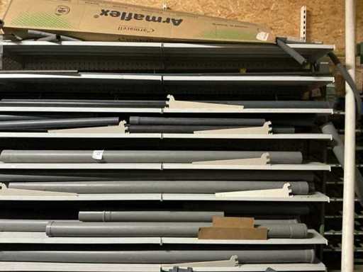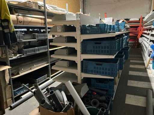 Waaronder 1x rek voorzien van 9 staanders en 60 legborden compleet diverse bevestigingshaken